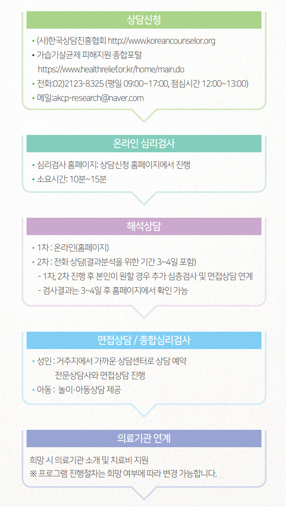 - 3단계 : 피해자 - 상담사 : 엄선된 자격을 갖춘 전문상담사